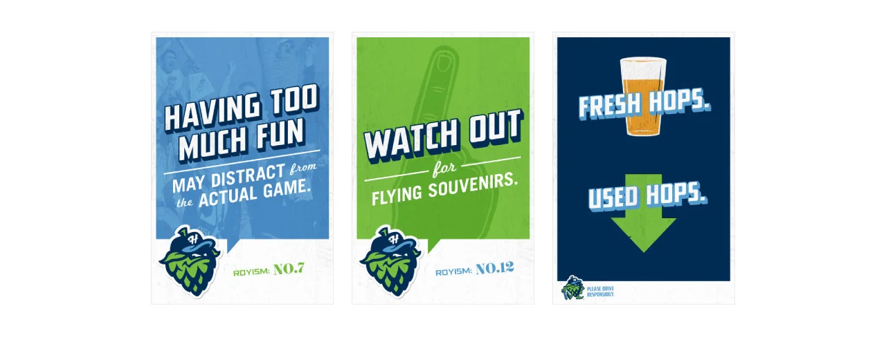 The Hillsboro Hops needed some help during their inaugural 2013 season as Portland's newest minor league baseball team. Not only did they need help branding the team, they needed help branding the new stadium they were building. Challenge accepted. With a completely blank canvas, we walked through the construction site and pointed out areas where we could bring their fun, family-friendly attitude to life.